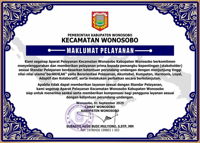Senin, 20 oktober 2025. Rapat Koordinasi Evaluasi Capaian PBB P2 Tahun Pajak 2025. Capaian PBB P2 Kecamatan Wonosobo per hari ini adalah 83, 35% dari ketetapan 3.806.781.514 realisasi 3.173.745.586. Camat Wonosobo Subagyo Agus Budi Mu...